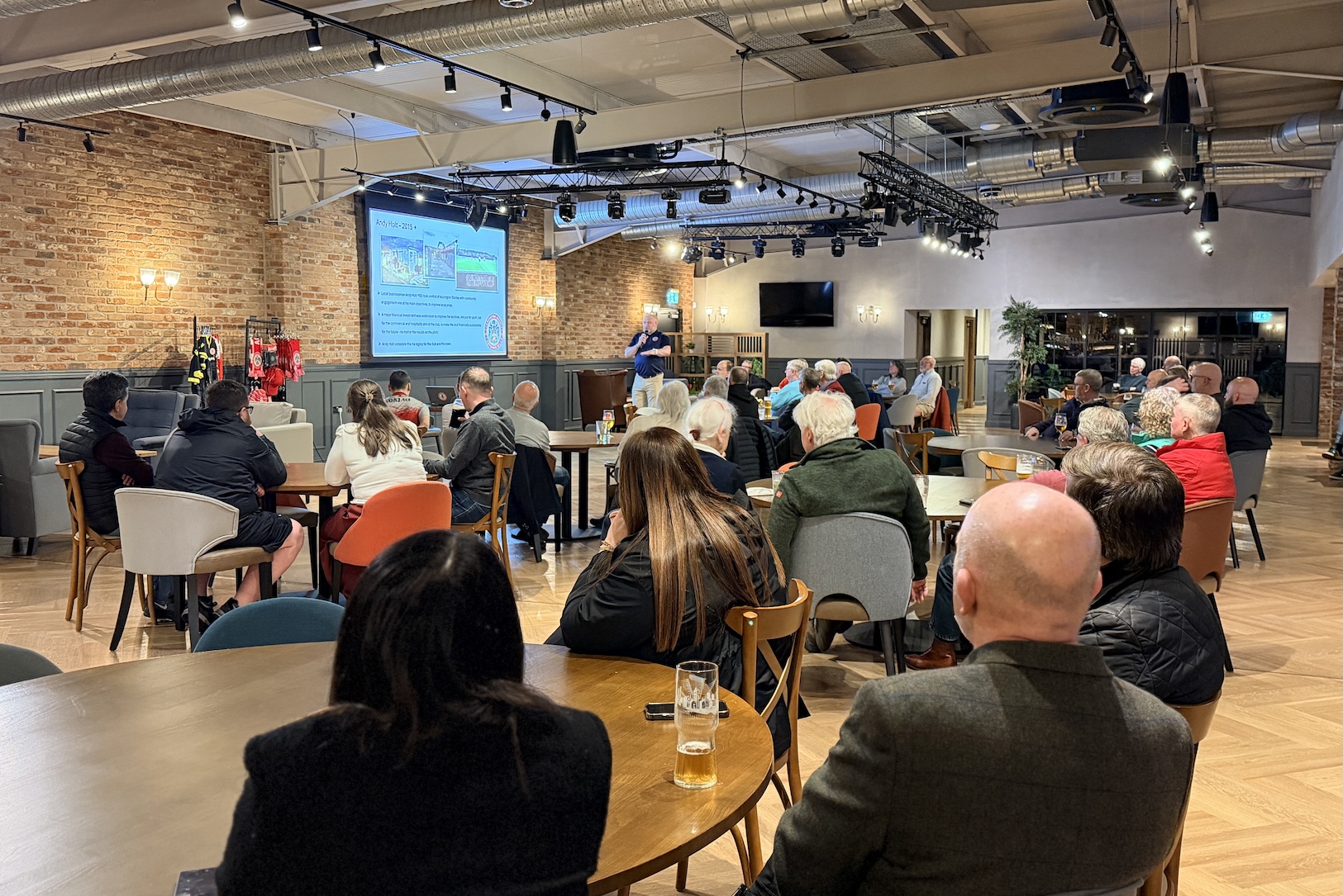 Guests heard about significant investment into infrastructure, including £600,000 spent on improving the stadium pitch. The upgraded surface, now built on sand with 6% synthetic material, enables the club to continue playing in adverse weather conditions when other fixtures are often postponed.