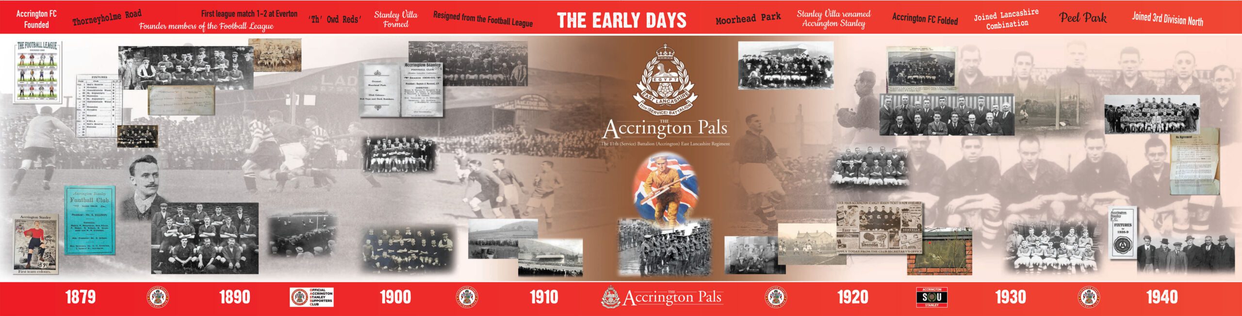 Welcome to our Accrington Stanley heritage page, where we celebrate the incredible journey of this historic football club. Explore the detailed timeline, showcasing the wonderful history of Accrington Stanley Football Club, from its early beginnings to its proudest achievements.